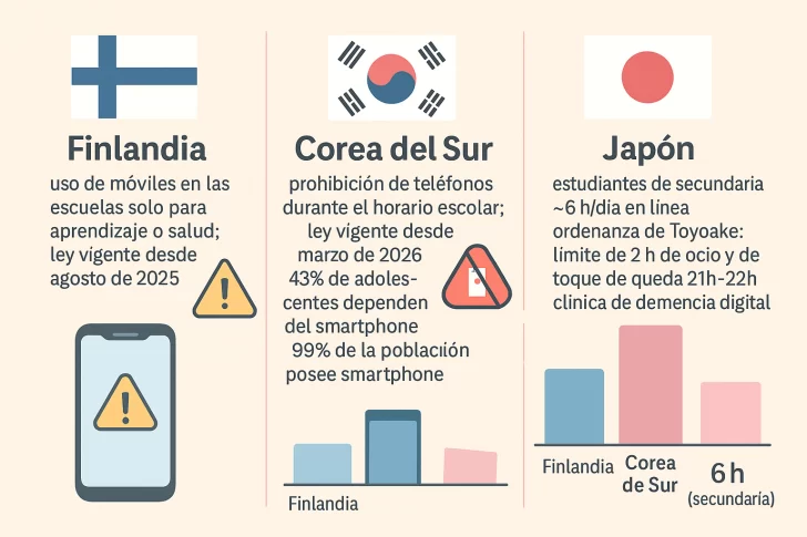 Japón implementa ordenanzas locales, como la de Toyoake, que recomiendan limitar el uso de móviles a dos horas diarias y establecer toques de queda digitales para menores.