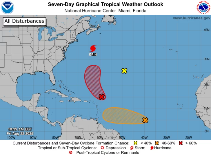 Onda tropical al oeste/suroeste de las islas de Cabo Verde: Se localiza una zona de aguaceros y tormentas eléctricas asociada a otra onda tropical, a varios cientos de kilómetros al oeste/suroeste de las islas de Cabo Verde. El sistema muestra algunos signos de organización, con una probabilidad media de 50 % de desarrollo en 48 horas, y media de 40 % también para los próximos 7 días. Se mantiene un seguimiento continuo de este fenómeno.
