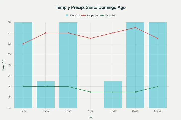 Todo sobre el clima en Santo Domingo, semana del 4 al 10 de agosto 2025: temperaturas récord y posibilidad de tormentas
