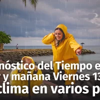 Para el martes, persistirán los efectos de la vaguada y la humedad, con desarrollo de nublados y aguaceros moderados a fuertes, acompañados de tormentas eléctricas y ráfagas de viento, especialmente en provincias como La Altagracia, El Seibo, Monte Plata, San Cristóbal, Santiago y otras del Cibao central y la frontera.