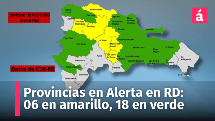 Último informe del tiempo: El COE mantiene 18 provincias y el Distrito Nacional en amarilla y 09 en verde en República Dominicana