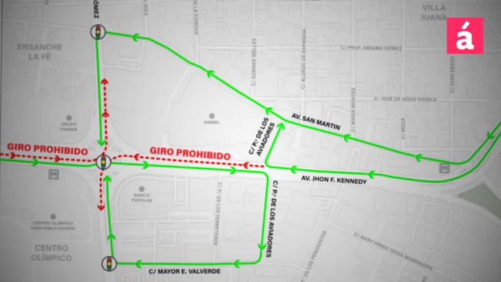 Rutas alternas en Santo Domingo por restricciones de giros en Kennedy y Gómez